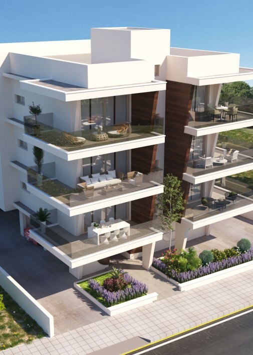 Modern residential complex with minimal aesthetics in Pervolia, Larnaca. consists ...